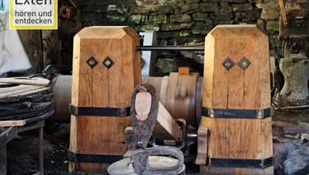 Im frühindustriellen Zentrum Exten wurden seit etwa 1710 Eisenhämmer betrieben. Dabei wurde über einen Hammergraben Wasser auf die Mühlräder geleitet, die die frühen “Schwanzhämmer” antrieben, später wurden dann Federhämmer verwendet. Hauptsächlich wurden Schaufeln, Spaten, Äxte, Beile und Gartengeräte hergestellt.